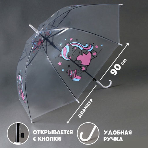 Зонт детский Единорожка полуавтомат прозрачный, d=90см