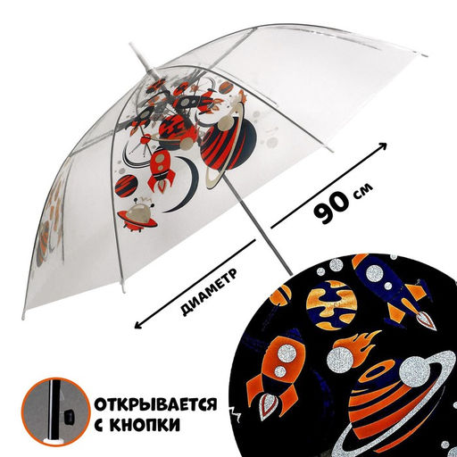 Зонт детский Космос полуавтомат прозрачный, d=90см