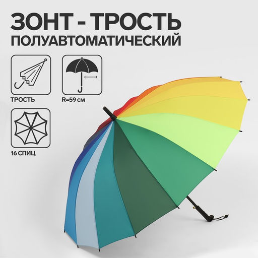 Зонт - трость полуавтоматический Радужный день, 16 спиц, R = 59 см, разноцветный