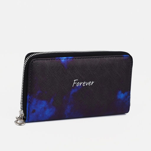 Кошелёк на молнии, отдел для карт, для монет, цвет чёрный/синий