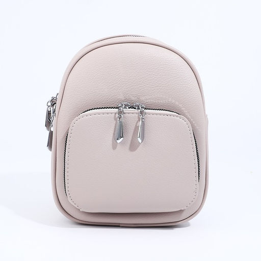 Сумка-рюкзак на молнии, 3 наружных кармана, длинный ремень, цвет серо-бежевый