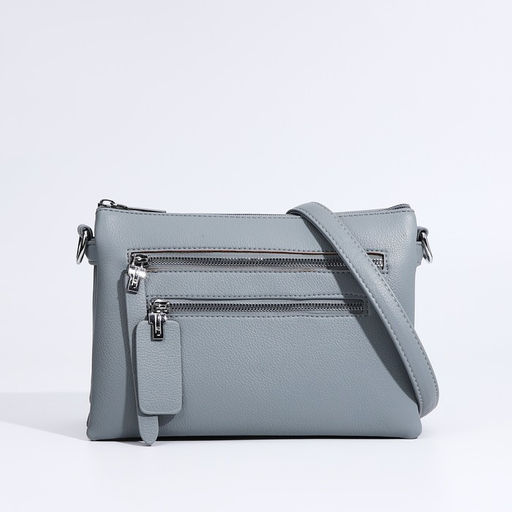 Сумка кросс-боди на молнии, 3 наружных кармана, цвет серо-голубой