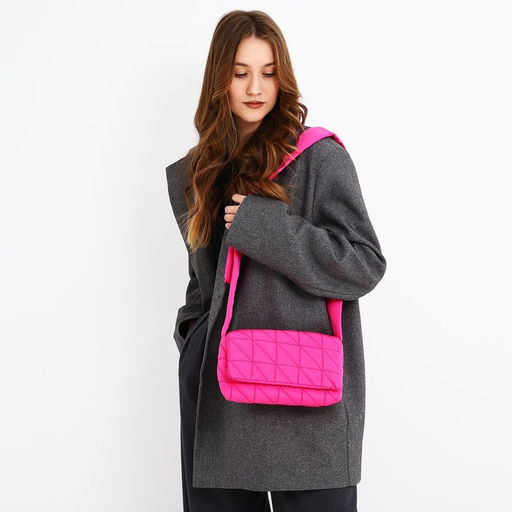 Сумка стеганная на плечо, 25*14 х 14*6 см см, отдел на молнии, цвет красный