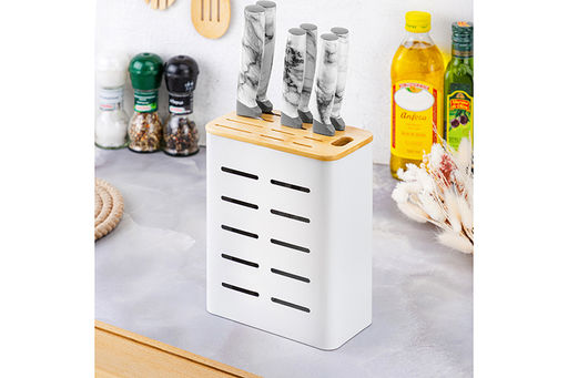 Подставка для ножей 17,5*9,3*21,5 см "Белая" + бамбуковая крышка