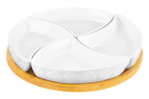 Менажница 25*25*6 см "Тропики" крутящ. 4 секции на дерев. подставке