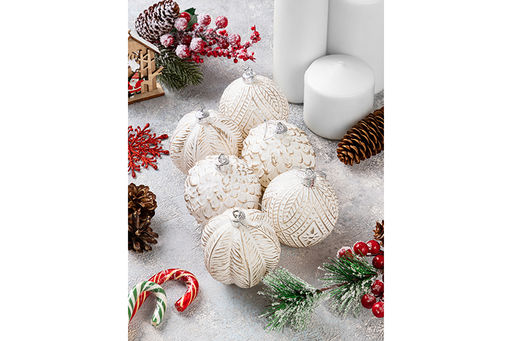 Набор 6 новогодних шаров 8*8 см "Винтажные узоры" шампань с эффектом старины
