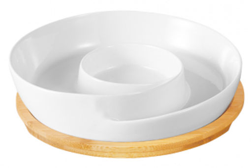 Тарелка сервировочная - менажница 23*23*5 см 450 мл "Улитка" глубокая на деревян. подставке-подносе