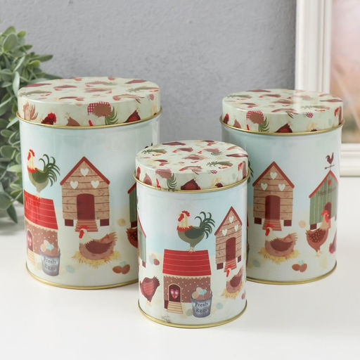 Шкатулка металл цилиндр "Курятник" набор 3 шт 7,5х7,5х10,7 9х9х12,7 10,5х10,5х13,5 см