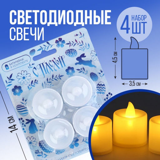 Набор светодиодных LED-свечей С Пасхой!, гжель, 4 шт., диам. 4.5, модель AR-0003