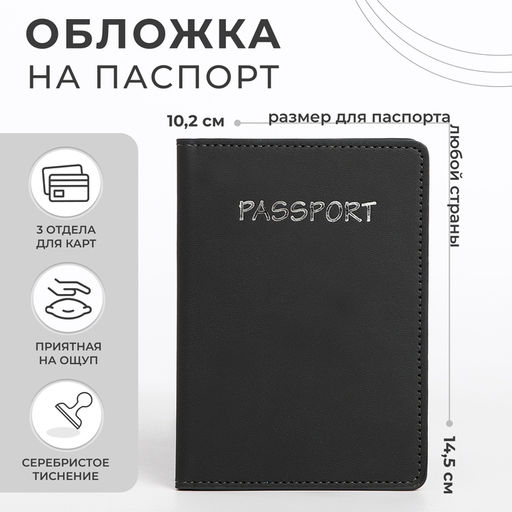 Обложка для паспорта, цвет тёмно-серый