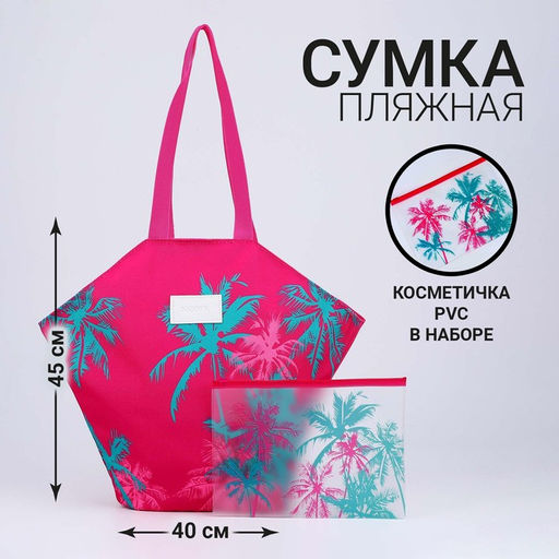 Сумка женская пляжная "Пальма" + бикини бэг