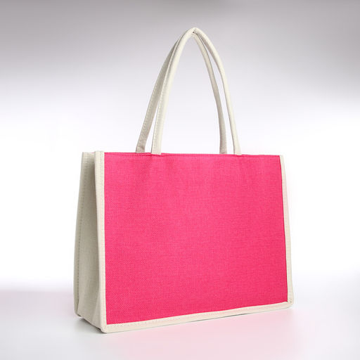 Сумка пляжная без застёжки, цвет молочный/малиновый