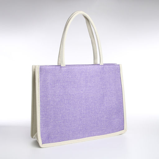 Сумка пляжная без застёжки, цвет молочный/сиреневый