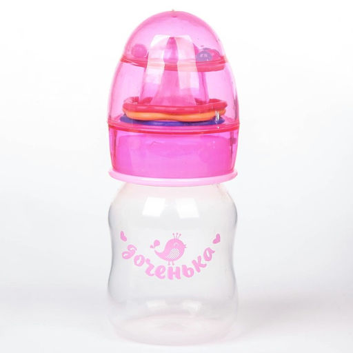 Бутылочка для кормления Доченька, классическое горло, с погремушкой, 60 мл., от 0 мес., цвет розовый