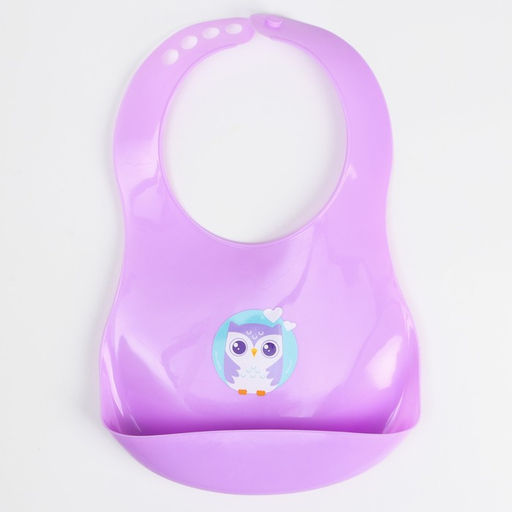 Нагрудник для кормления Мишка пластиковый с карманом, цвет розовый