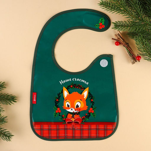 Нагрудник для кормления Крошка Я Наше счастье, непромокаемый на липучке, с карманом, цвет зеленый