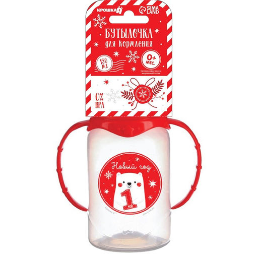 Бутылочка для кормления Крошка Я Мой 1 Новый год, классическое горло, 150 мл., от 0 мес., цилиндр, с ручками