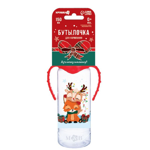 Бутылочка для кормления Крошка Я Новогодние друзья, классическое горло, 250 мл., от 3 мес., цилиндр, с ручками