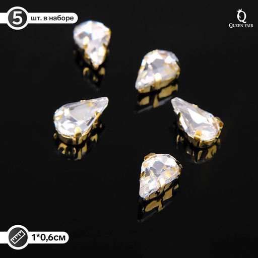 Стразы в цапах (набор 5 шт), 6х10мм, цвет белый в золоте