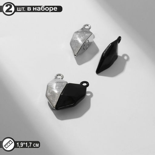 Замок магнитный "Сердце" геометрия (набор 2шт), цвет серебристо-чёрный матовый