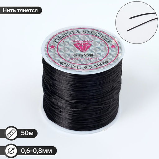 Нить силиконовая (резинка) d=0.6-0.8мм, L=50м, цвет чёрный