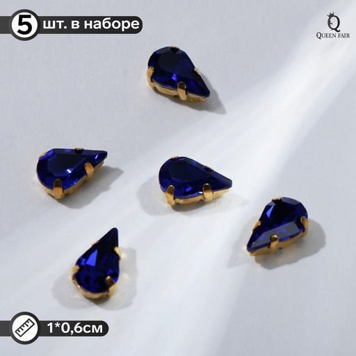 Стразы в цапах (набор 5 шт), 6х10мм, цвет синий в золоте