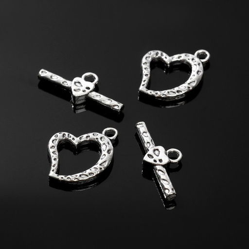 Замок - тоггл из 2х частей "Сердце", 20х19 мм, 20х8 мм, чернёное серебро