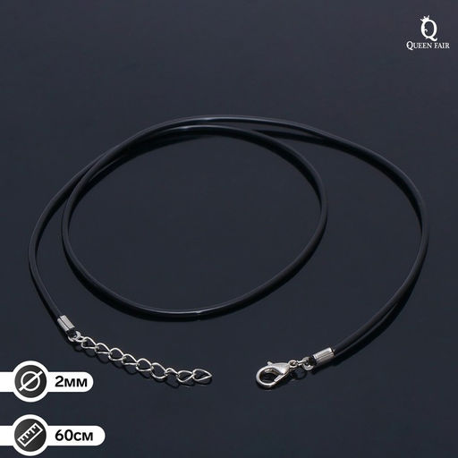 Цена за 10 шт. Шнурок каучуковый, неполый, 60см, d=2мм, цвет чёрный в серебре
