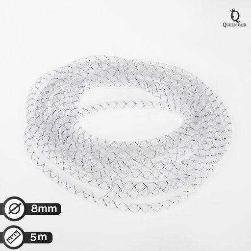Бижутерная сетка-рукав, 8мм, 5 метров, цвет белый с серебристой нитью