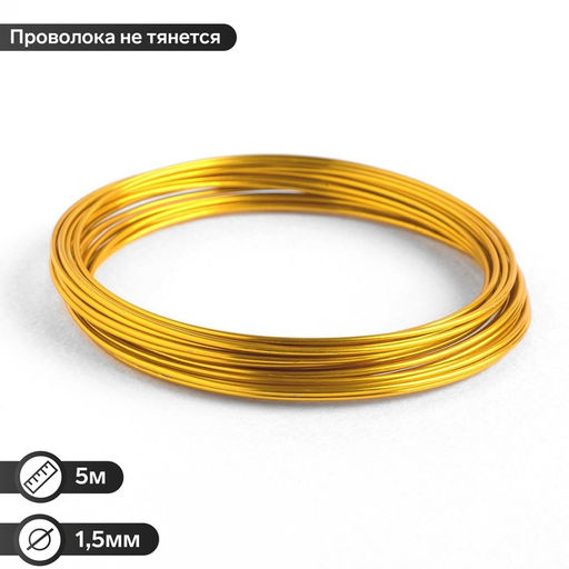 Проволока для плетения d=1,5мм, намотка 5м, цвет золотой