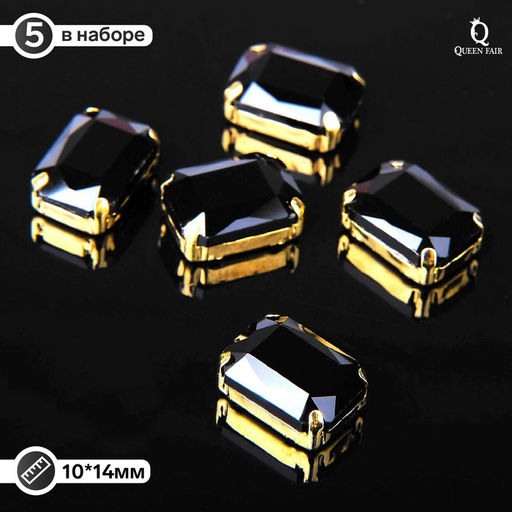 Стразы в цапах (набор 5 шт), 10х14мм, цвет чёрный в золоте