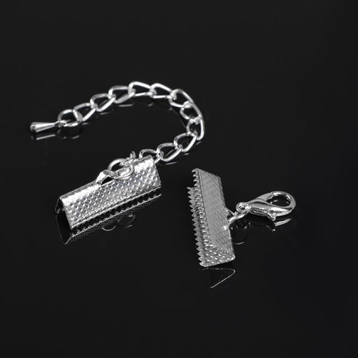 Зажим для ленты (пара) 20мм, с цепочкой удлинителем, цвет серебро