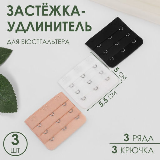 Цена за 5 шт. Застёжка-удлинитель для бюстгальтера, 3 ряда 3 крючка, 5,5 5 см, 3 шт, цвет белый/бежевый/чёрный