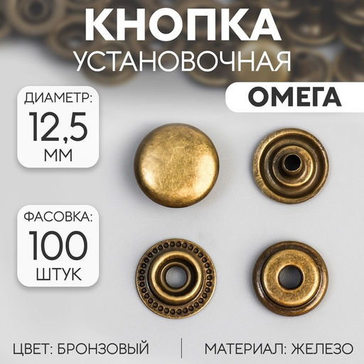 Цена за 100 шт. Кнопка установочная, Омега, железная, d = 12,5 мм, цвет бронзовый
