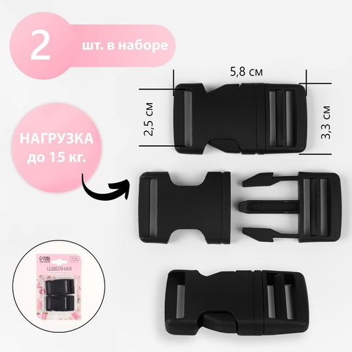 Цена за 4 шт. Фастекс 25 мм, нагрузка до 15 кг, 2 шт, в блистере, цвет чёрный