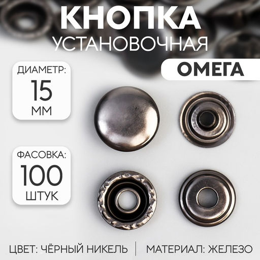 Цена за 100 шт. Кнопка установочная, Омега (О-образная), железная, d = 15 мм, цвет чёрный никель