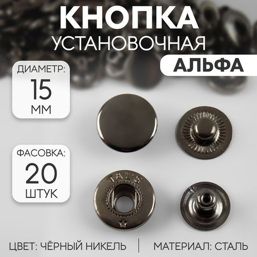 Цена за 20 шт. Кнопка установочная, Альфа, d = 15 мм, цвет чёрный никель