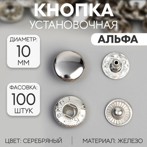Цена за 100 шт. Кнопка установочная, Альфа, железная, d = 10 мм, цвет серебряный