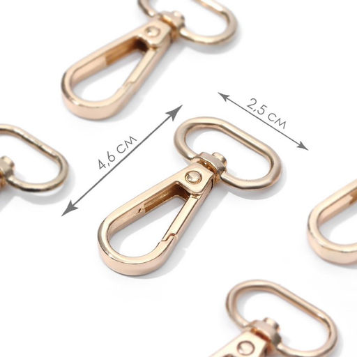 Карабин металлический, 46 25 мм / 20 3 мм, 5 шт, цвет золотой