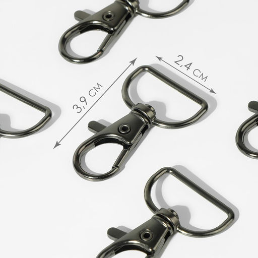 Цена за 2 шт. Карабин металлический, 39 24 мм / 20 1,5 мм, 6 шт, цвет чёрный никель