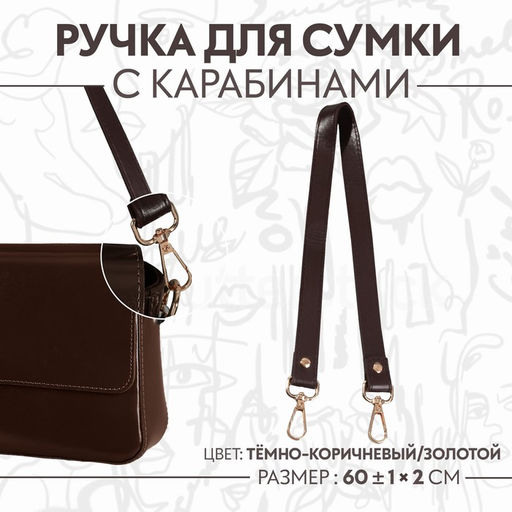 Ручка для сумки, с карабинами, 60 1 см 2 см, цвет тёмно-коричневый