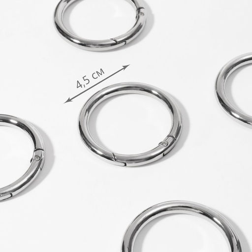 Кольцо-карабин, d = 35/45 мм, толщина - 5 мм, 5 шт, цвет серебряный