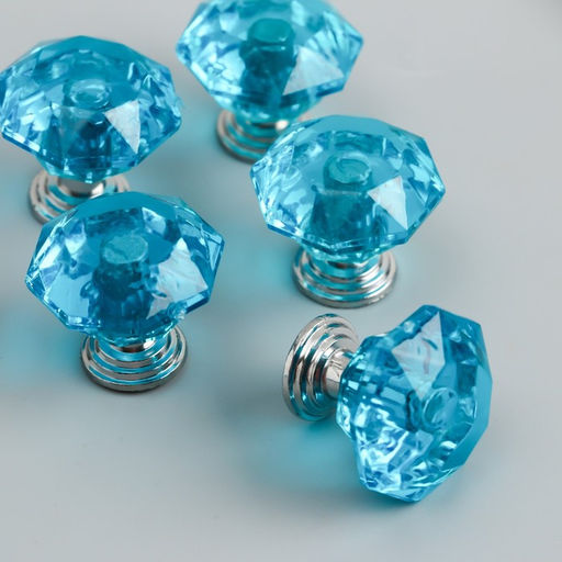 Цена за 5 шт. Ручка для шкатулки металл "Кристалл сине-зелёный" серебро 2,6х2,6х2,4 см