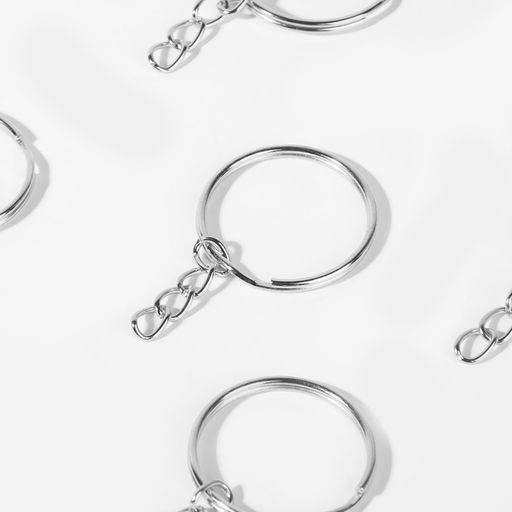 Цена за 100 шт. Основа для брелока, с цепочкой, d = 25 мм, цвет серебряный