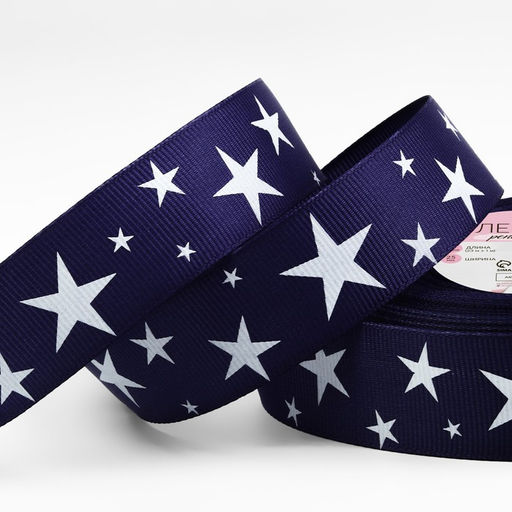 Лента репсовая Звёзды, 25 мм, 23 1 м, цвет тёмно-синий/белый
