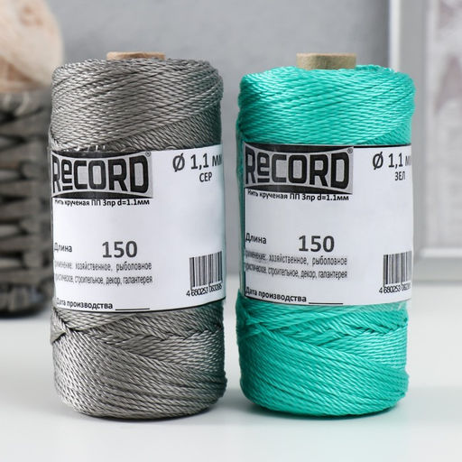Нить кручёная 3-х прядная полипропиленовая, d=1,1 мм 150 м (набор 2 шт. сер,зел)