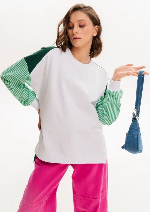 Свитшот с хлопковыми рукавами в полоску 90.2.2