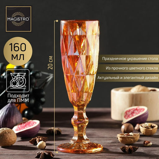 Бокал стеклянный для шампанского Magistro Круиз, 160 мл, 720 см, цвет янтарный