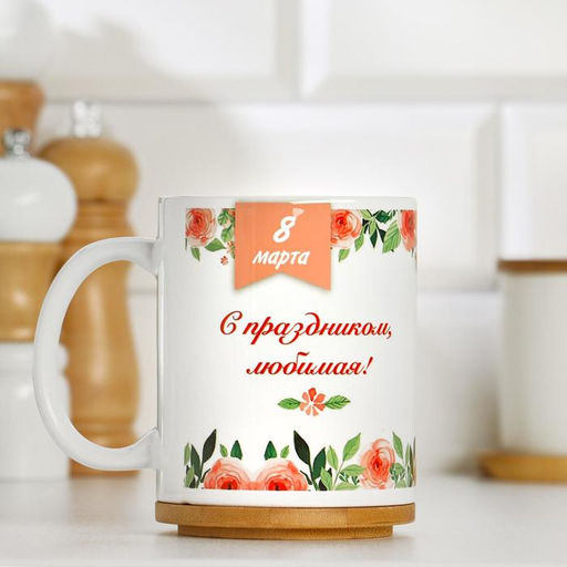 Кружка сублимация "С праздником любимая!", c нанесением