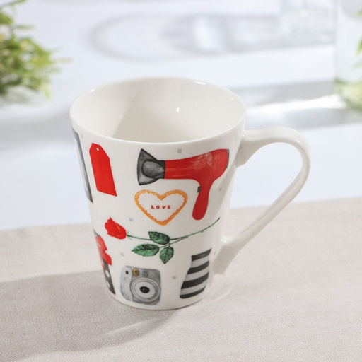 Кружка фарфоровая Доляна Котик, 320 мл, цвет белый
